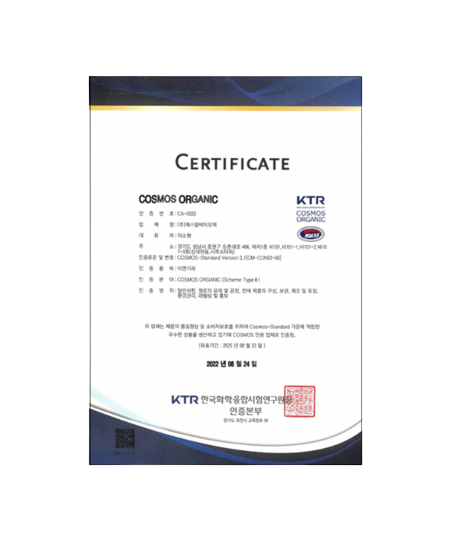 Tiene la certificación global de COSMOS Organic, que garantiza los procedimientos de producción, ausencia de ingredientes petroquímicos como parabenos, fenoxietanol, aromatizantes y colorantes sintéticos.