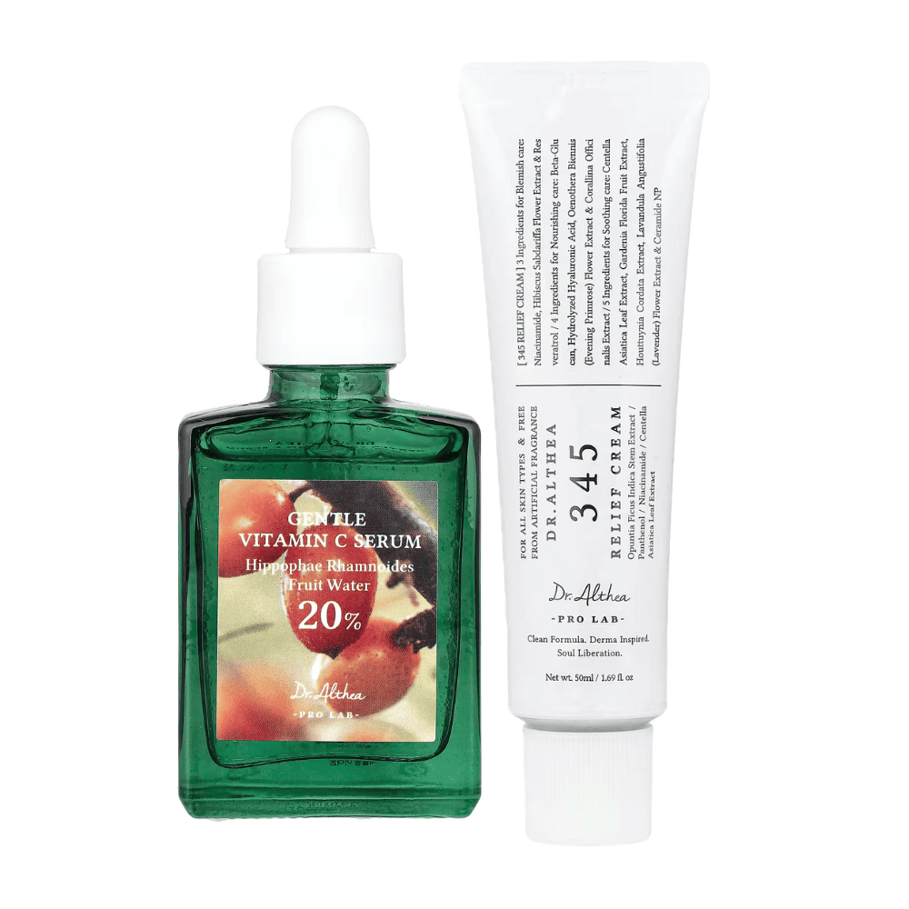 Descubre el equilibrio perfecto entre reparación e iluminación con nuestro Gentle Vitamin C Serum y la 345 Relief Cream.