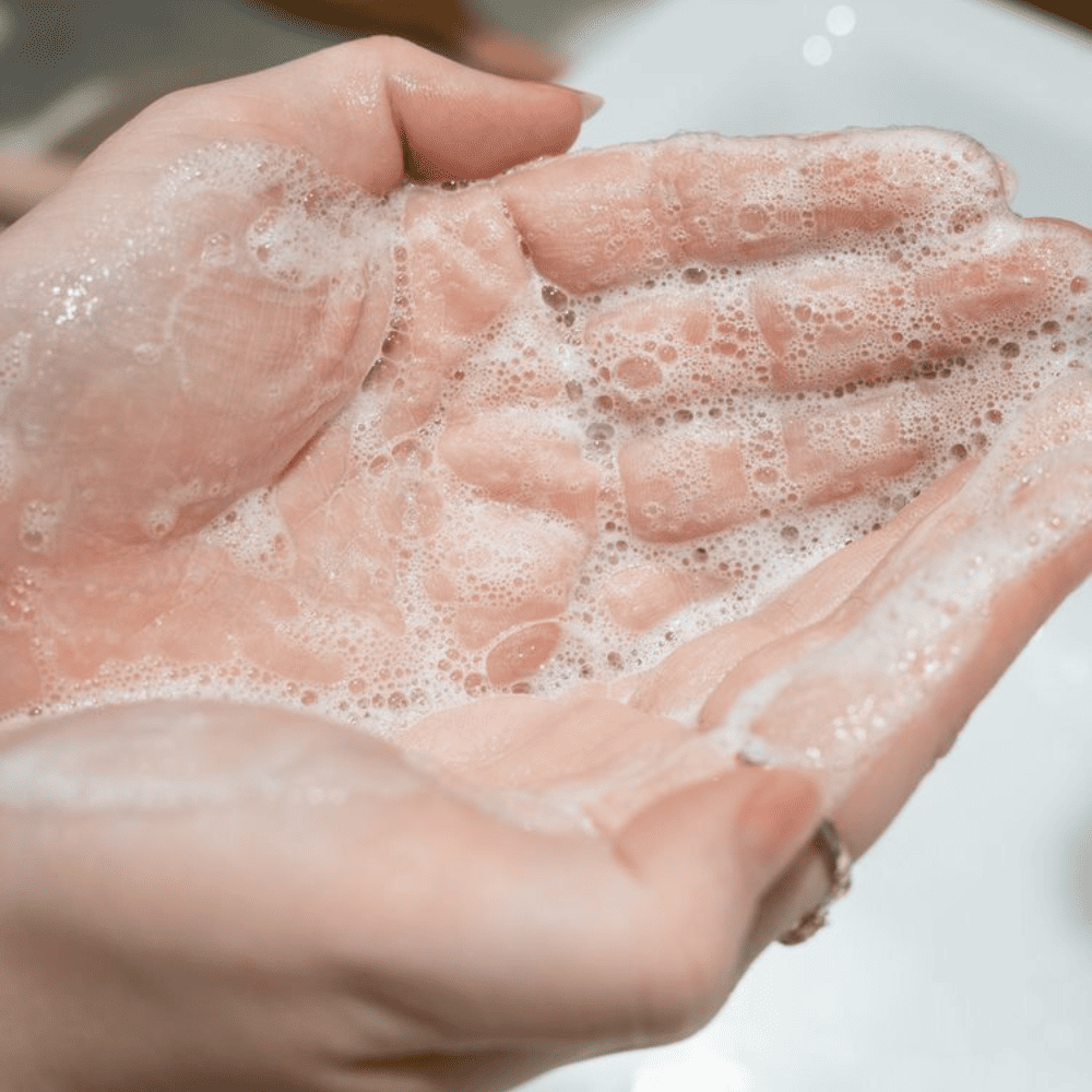 - Aplica el producto en la palma de las manos y masajea suavemente el rostro.